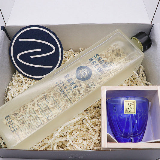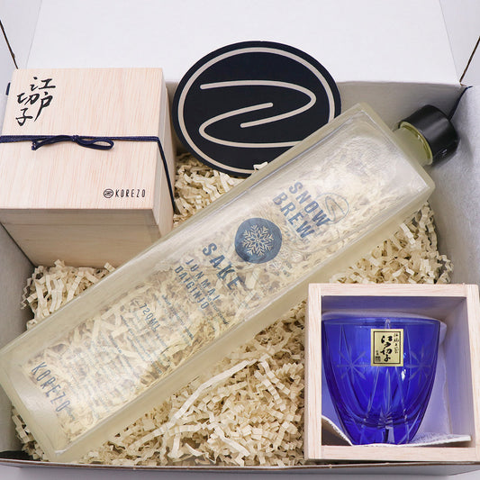 Japanese Sake KOREZO Original Snow Brew sake x2pcs, Blue & Pink sake glass x1 each, KOREZO Box